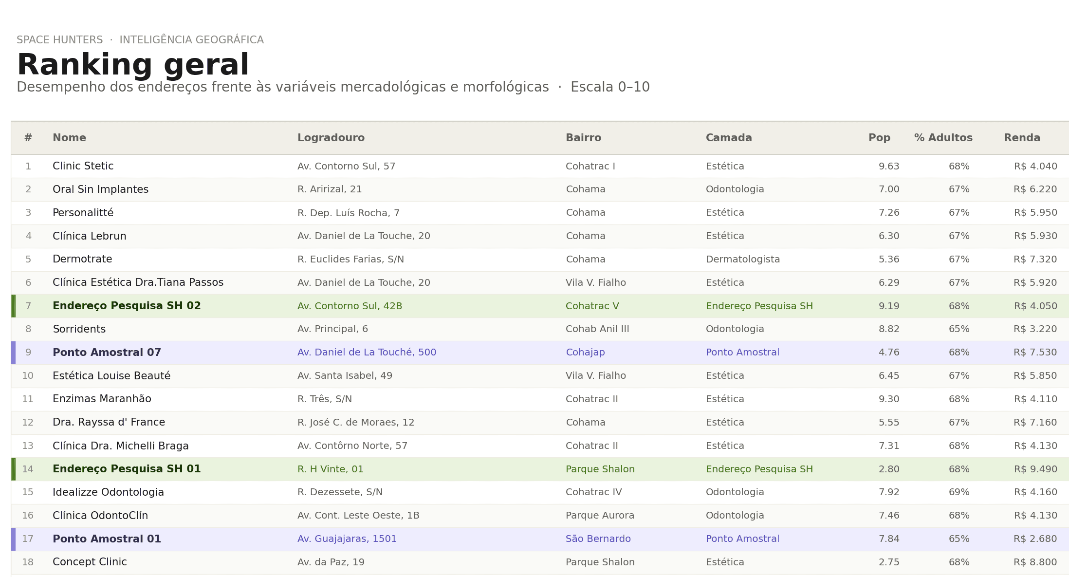 Investigación de direcciones de competidores, puntos disponibles (los del cliente y los identificados por nuestro equipo) y puntos actuales de la marca.